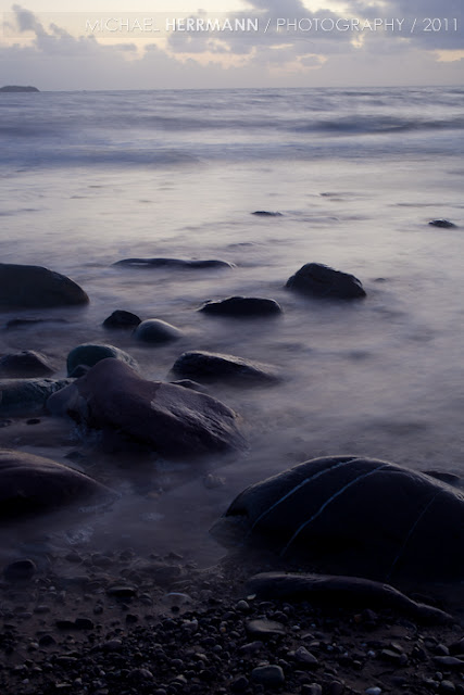 Here are some samples of photos that I took during the week using long shutterspeed. For landscape photos you need a tripod, to be independent from any lightsituation. The long shutterspeed allows you to show movement of water, clouds, carlights in contrast to static structures like the rocks in the water. The evening time after sunset is a good time to practise long shutterspeed. It is important to know that most cameras have a limit of the longest shutterspeed of 30 seconds. If you need a longer shutterspeed use the B-setting on your camera and a cable release.